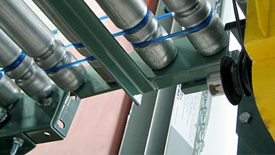 Live Roller Systems can be powered by v-belts, flat conveyor belts, chain, round belts or motorized pulley’s. In belted powered systems, friction between the belt and roller causes the roller to turn when the belt is driven.