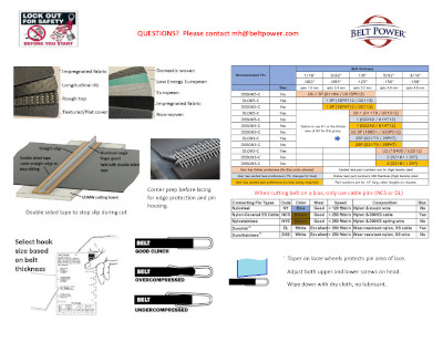 Questions to answer before Belt Power comes to install or service your lightweight belt on site.